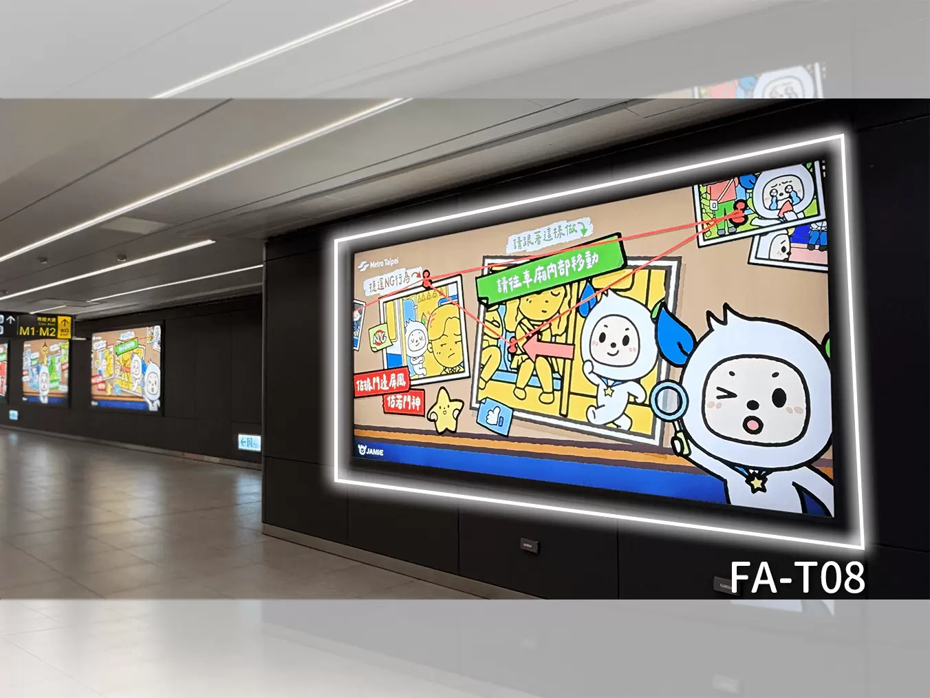 紅線走道燈箱|FA-T01~FA-T08紅線走道燈箱|FA-T01~FA-T08紅線走道燈箱|FA-T01~FA-T08紅線走道燈箱|FA-T01~FA-T08❖ 版位編號 ❖FA-T01~08❖ 廣告形式 ❖紅線大廳層,走道旁燈箱❖ 播放時間 ❖06:00~24:00❖ 尺寸 ❖H180xW360公分/單面❖ 人流 ❖每日約28萬人次 分享到